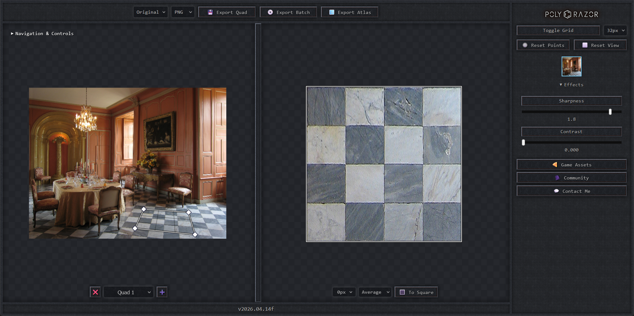Supports multiple quads: You can extract multiple textures from a single image at once.